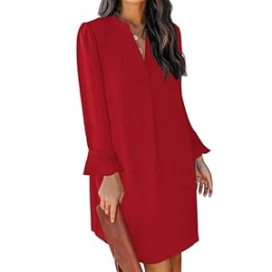 QACOHU Fall Dresses for Women 2025 Casual V Neck Long Sleeves Flowy Mini Tunic Dress