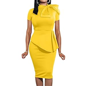 WanMem Women Formal Bodycon Peplum Cocktail Dress Short Sleeve Bow Ruffle Pencil Party Midi Dresses