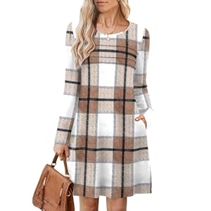 OFEEFAN Long Sleeve Dress for Women Crew Neck Empire Waist Tunic Dress with Pockets