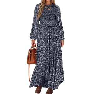 PRETTYGARDEN Women’s Fall Dresses 2025 Long Sleeve Flowy Casual Floral Maxi Dress Crew Neck Smocked Tiered Long Dress