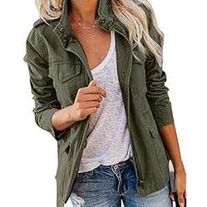 Pepochic Womens Military Jacket Zip Up Snap Buttons Lightweight Utility Anorak Field Safari Coat Outwear…