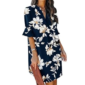 QACOHU Summer Dresses for Women V Neck Ruffle Short Sleeve Casual Shift Dress