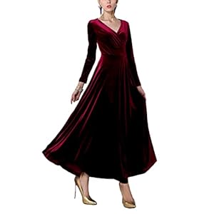 Urban CoCo Women Long Sleeve V-Neck Velvet Stretchy Long Dress