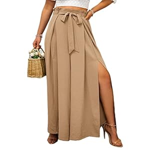 Simplee Women’s Casual Plus Size Side Split Wide Leg Pants High Waist Beach Flowy Pants Comfy Lounge Loose Belted(4XL Khaki)