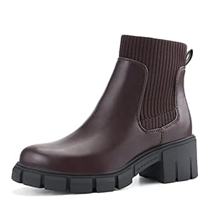 REDTOP Women’s Elastic Chelsea Boots Chunky Block Heel Platform Lug Sole Ankle Booties