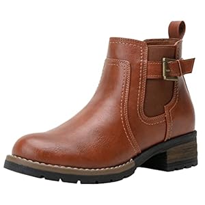 JABASIC Womens Chunky Ankle Boots Slip on Chelsea Boots Elastic Booties (8,Brown)