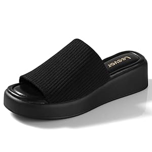 Leevar Platform Sandals for Women – Soft Memory Foam Padded Platform Wedges Sandals – Womens Backless Slip On Platform Slides – Comfy Square Open Toe Mules Black Platform Sandals Summer Casual Flatform Platform Wedge Slides for Women, Black size 8